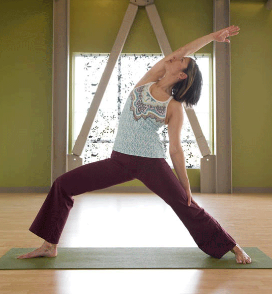 Need an energy boost on a Monday? Unleash your inner Warrior to help you tackle the rest of the week. The 5 Warrior Warm-Up is my latest yoga tutorial on the Athleta Chi. I designed this one for the non-yogis, in an attempt to convert them. Because my philosophy is that yoga helps you do anything better, and it’s my mission to prove it. Plus there’s a bonus, the Burnin’ Down Dog. I’m thinking that might intrigue you enough to hop on over to the Chi and check it out. Please post your comments there. Here’s me in one of my all-time faves, reverse warrior. If you’re liking what I’m wearing, it’s the Pavitra top in Blue Spark Cowgirl (of course), and the Kickbooty pant.