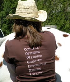 Our ongoing effort is raising money to provide scholarships to our Cowgirl Yoga retreats for breast cancer survivors; we call it Cowgirls vs. Cancer. You can help us provide the healing with horses and yoga experience by purchasing a COWGIRL tee for $34 – all proceeds go into our scholarship fund.