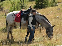 One of our Eat Pray Love retreaters stayed an extra day, and we did a trail ride in the Bridger Mountains with the amazing Janice of Montana Horse Sense. It was one of those days when the weather, the company and the surroundings all came together to create a lasting memory. Christine rode Rocky (the Appaloosa), and I am on Flash. I seem to be getting farther and farther away from my city girl days…