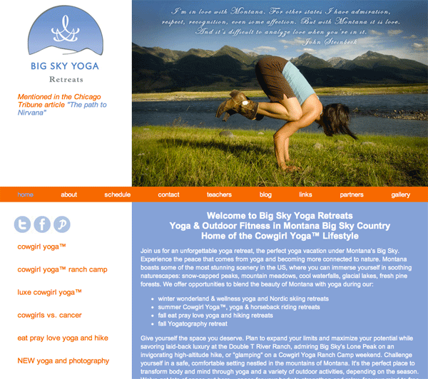 I’m thrilled to share my latest big news…after more than six months of work, we’ve launched a new website for Big Sky Yoga Retreats. I feel like I had another baby. I keep going to it and admiring it, savoring that blissed-out new mom feeling. It represents me, not just my business – as in what I personally believe in, and have made my life’s work. Which is why I probably did so much fretting over the creation process.